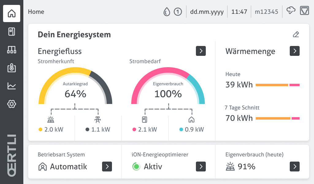 Le dispositif de réglage assisté par l’IA d’Oertli Aero fonctionne parfaitement avec SmartGuard et offre des fonctions intelligentes qui permettent d’optimiser le flux d’énergie dans le bâtiment et d’augmenter l’efficacité énergétique :